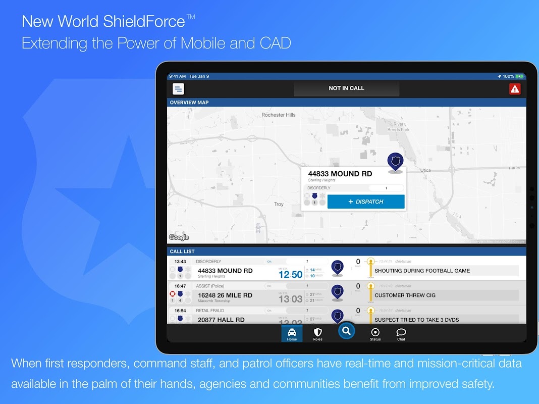 Các nhân viên cảnh sát luôn an toàn và chuẩn bị tốt hơn bằng cách sử dụng New World ShieldForce ™ được tạo riêng cho người dùng được cấp phép của các giải pháp phần mềm thực thi pháp luật New World ™ của Tyler Technologies.
