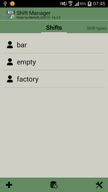 Also the application allows you to manage up to 5 different people's shifts. You can create a new shift, edit or remove an existing one. The process of creating