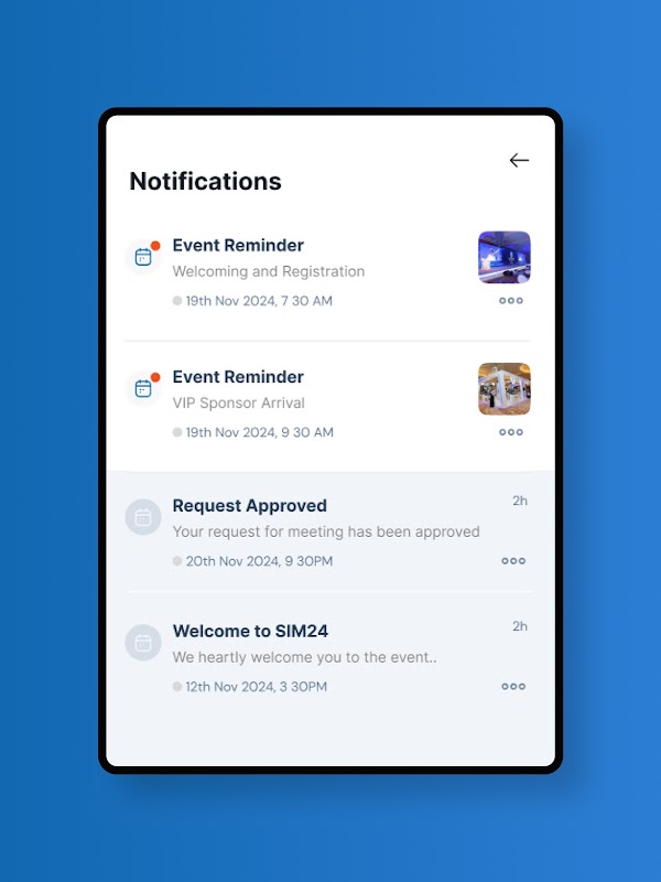 • Thông báo & Nhắc nhở: Ứng dụng có thể gửi thông báo đẩy để thông báo cho người tham dự về các phiên sắp tới, thay đổi lịch trình hoặc thông báo sự kiện.