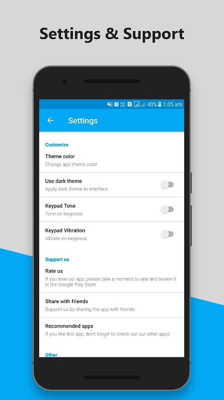 - Dialer Keypad to dial number.
