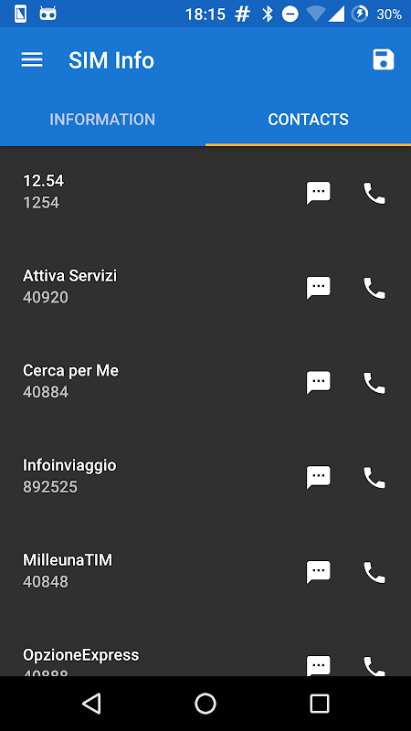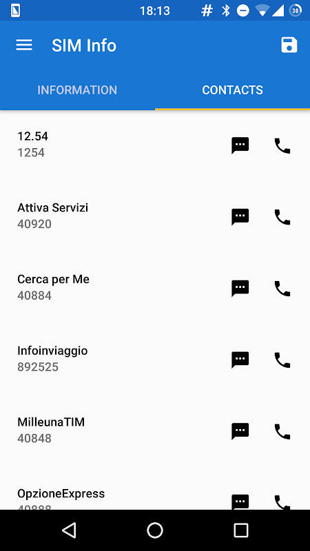 SIM Info allows you to have at hand the main information relating to your SIM and contacts present in it, which can be easily saved to a .csv file.