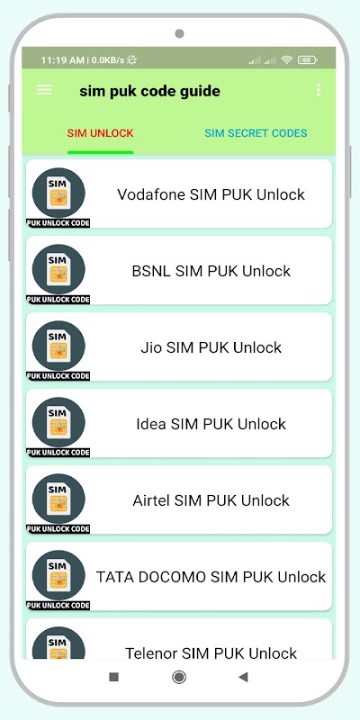 In order to unlock your SIM, you will get all the SIM puk codes in this application.