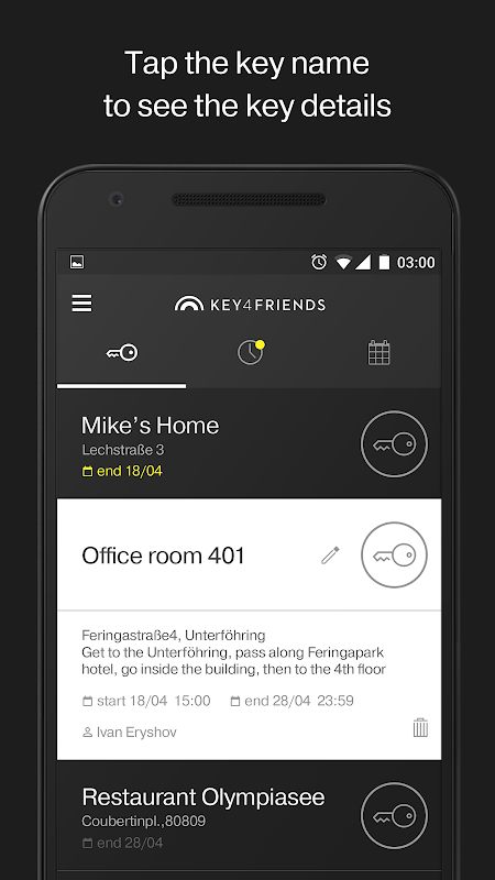 phân phối an toàn của các phím giữa những người bạn chưa bao giờ được dễ dàng hơn: ứng dụng Key4Friends nhận phím mà chủ sở hữu mong muốn chia sẻ với các bạn từ các ứng dụng MobileKey.