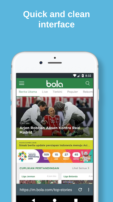 optimized for one hand handling (toolbar at bottom)