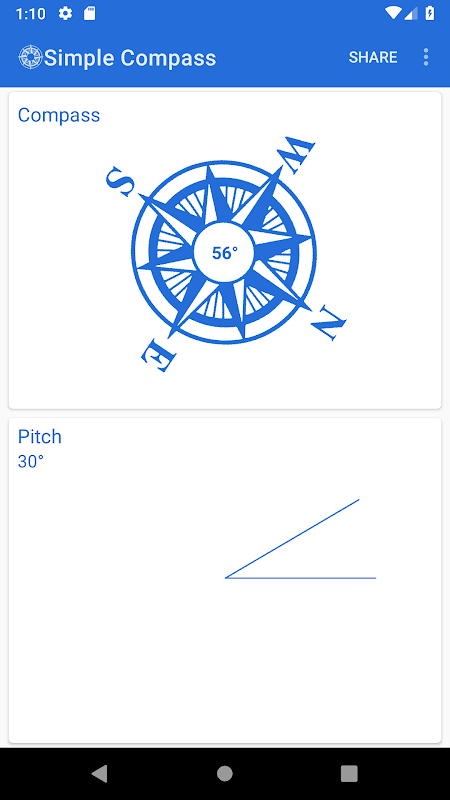 La bàn đơn giản được sử dụng để hiển thị hướng và cao độ. Ứng dụng này rất dễ sử dụng và nhanh hơn các ứng dụng la bàn khác.