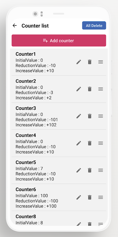 • Bạn có thể đặt tên bộ đếm, giá trị ban đầu, giá trị giảm và giá trị tăng.