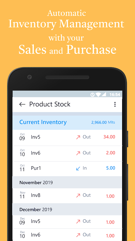 Sử dụng Trình quản lý hóa đơn đơn giản, bạn cũng có thể ghi lại các giao dịch mua và theo dõi hàng tồn kho. Hơn nữa, bạn có thể ghi lại và theo dõi các Đơn đặt hàng đã nhận được là đang chờ xử lý hoặc đã hoàn thành. Ứng dụng cũng sẽ giúp bạn tạo báo cáo lãi và lỗ