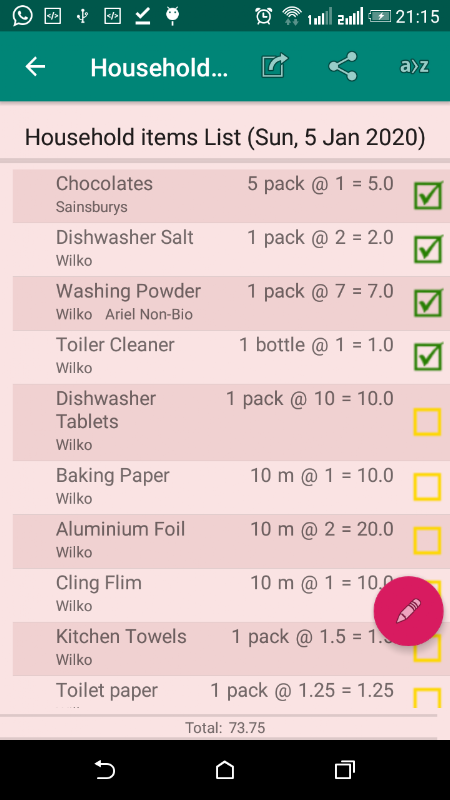 Danh sách này cũng có thể được sử dụng trong chế độ Hiển thị cho phép bạn đánh dấu các mặt hàng là Đang chờ xử lý hoặc Đã hoàn thành hoặc Không có sẵn, để giúp bạn di chuyển trong khi mua sắm.