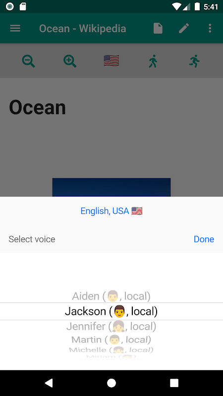 Nhấn vào biểu tượng cờ trên cùng để chọn ngôn ngữ cần đọc và nhấn 'xong - chọn giọng nói' để chuyển giữa các giọng nói khác nhau (ví dụ nam / nữ) trong ngôn ngữ đó.