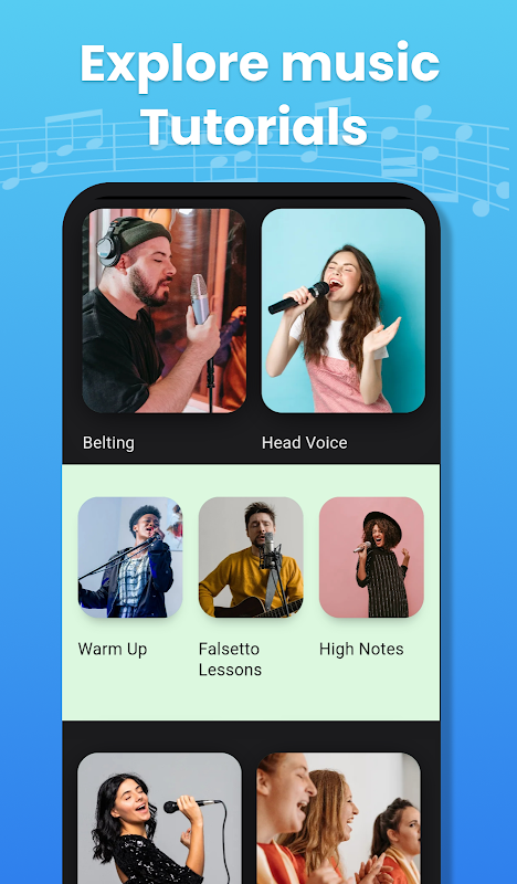 Từ những kiến thức cơ bản về luyện giọng miễn phí cho đến các bài tập hát nâng cao, ứng dụng học hát của chúng tôi cung cấp hướng dẫn hoàn hảo để giúp bạn học hát. Cho dù bạn muốn học hát nhạc cổ điển, nhạc pop hay hip-hop, ứng dụng huấn luyện hát sẽ giúp bạn học các nốt nhạc và hát như một người chuyên nghiệp. Ứng dụng luyện giọng hoàn hảo cho người mới bắt đầu học hát miễn phí lần đầu tiên. Làm ấm giọng nói của bạn và vượt qua nỗi sợ hãi trên sân khấu với khóa học hát trong ứng dụng học hát luyện giọng.