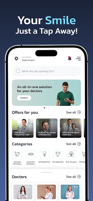 Ứng dụng Đặt lịch hẹn nha khoa của chúng tôi giúp bệnh nhân dễ dàng tìm thấy nha sĩ đáng tin cậy và đặt lịch hẹn chỉ với vài thao tác chạm. Dù bạn đặt lịch khám định kỳ, phẫu thuật thẩm mỹ hay cấp cứu, chúng tôi đều đáp ứng được.