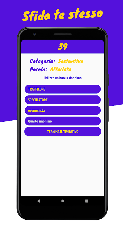Con tantissime parole a disposizione potrai divertirti a scoprire tutti i sinonimi associati, sfidando amici, giocatori online e metterti alla prova da solo nella modalità singleplayer. Impara e divertiti anche tu con Sinomis arricchendo cosi il vocabolario e la conoscenza della lingua italiana.
