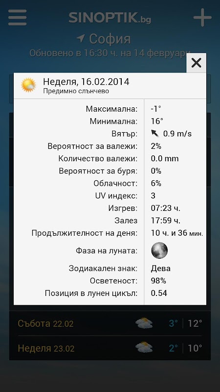 Сега цялата информация от Sinoptik.bg е достъпна за вас навсякъде, където и да сте и по всяко време, чрез мобилното ни приложение за Android.