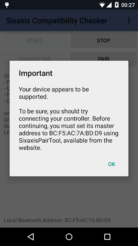 Đây là ứng dụng đồng hành với điều khiển Sixaxis và cho phép bạn kiểm tra xem thiết bị của bạn là tương thích với các bộ điều khiển sau đây trước khi mua ứng dụng đầy đủ trên Google Play: