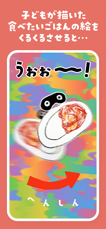 Sau khi vẽ hình món ăn muốn ăn, bạn hãy chụp ảnh bằng ứng dụng. Bạn có thể có được một công thức bằng cách xoay nó và làm cho nó "biến hình". Bạn cũng có thể tìm hiểu về thực đơn cải thiện cân bằng dinh dưỡng khi kết hợp thành thực đơn.