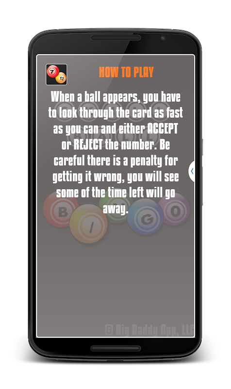 The game play is simple. Every time a ball pops up, you press the left soft-key to reject it if it's not on your card, or the right soft-key to accept it if it is. The quicker you decide, the faster the next ball comes up, with the aim being to fill your card as quickly as possible.