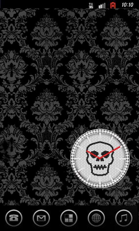 đồng hồ widget thiết kế hộp sọ với một rhinestone kim cương
