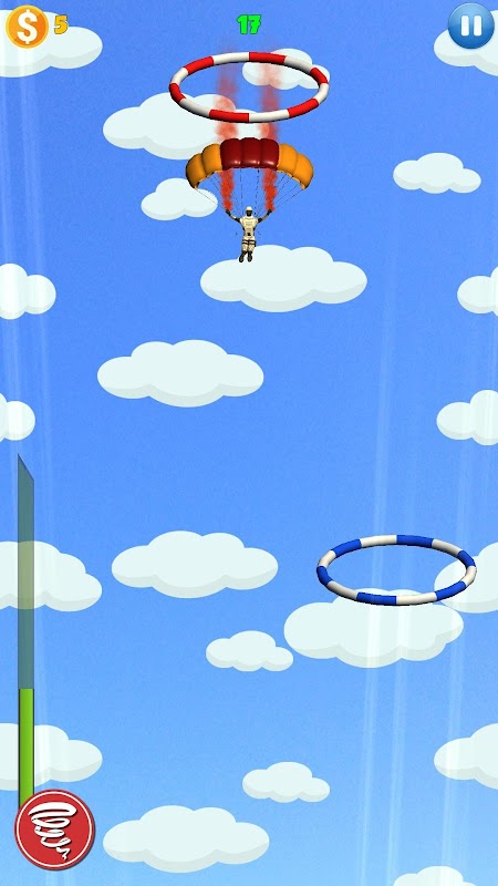 Take control of a parachutist and join a remarkable sky diving endless adventure. Your goal is to fly through hovering hoops by performing rolling stunt, and avoid getting crushed.