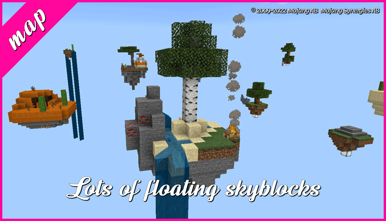 Bản đồ bầu trời Minecraft là một trò chơi sinh tồn trong đó người chơi thấy mình trên một mảnh đất nhỏ, bao gồm các khối đất. Nó có một cái cây và một cái rương trên đó. Chiếc rương này chứa một số vật phẩm cần thiết chắc chắn sẽ hữu ích trong trò chơi. Bạn sẽ phải sử dụng tất cả các kỹ năng sinh tồn của mình và sẽ khá khó khăn trên bản đồ skyblock cho minecraft. Để sống sót, bạn sẽ cần phải chặt một cây sồi và trồng một cây mới trên mod skyblock cho minecraft 1.19. Bạn cũng có thể xây dựng các trình tạo trên bản đồ skyblock cho mcpe uces với sự trợ giúp của họ. Với sự trợ giúp của các tài nguyên được khai thác cho mod bầu trời cho minecraft, bạn có thể chế tạo rất nhiều vật phẩm hữu ích cho mình: xẻng, rìu, cuốc, v.v. Ngoài ra, bạn có thể chế tạo một thanh kiếm để chống lại đám đông, điều này tất nhiên sẽ xuất hiện trên skyblock của bạn trong minecraft. Và sau khi tích lũy được một số khối nhất định, bạn có thể chuyển đến bản đồ skyblock tiếp theo cho mcpe, nơi bạn sẽ tìm thấy các khối đất và xương rồng, đồng thời cũng sẽ có một cái rương.