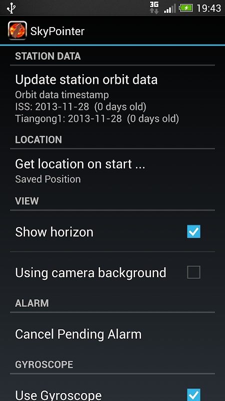 SkyPointer không cần kết nối Internet để tải dữ liệu ngoại trừ quỹ đạo cho vệ tinh kích hoạt bởi chính mình.