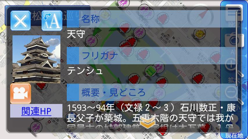 スマートフォンのカメラを目の前にかざすと、見たままの景色にその施設のアイコンが重ね合わせて表示されます。