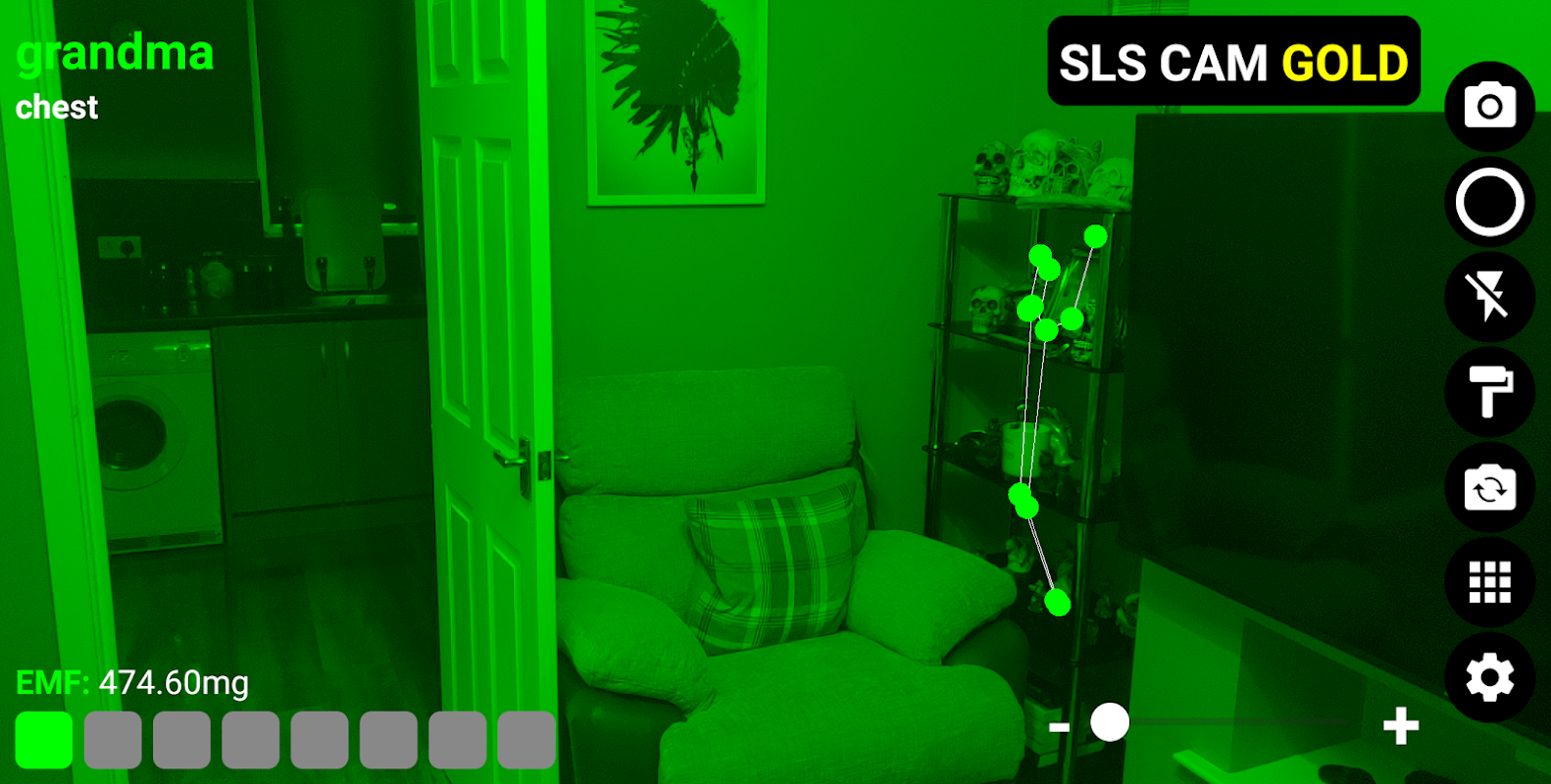 Our SLS Cam Gold application is the most advanced ghost hunting app available, combining EMF Detection, the SLS Camera, and a Word Bank. THE GOLD STANDARD! Allowing you to see, hear and pick up EMF readings from paranormal entities. Hear ghost responses in real time, audibly, and written on screen. As well as real time full skeletal tracking of spirits and paranormal entities.