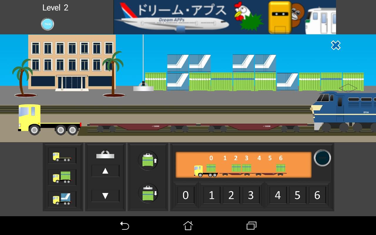 Khi các container được đặt như hiển thị trên màn hình, tàu container khởi hành và di chuyển lên một cấp.