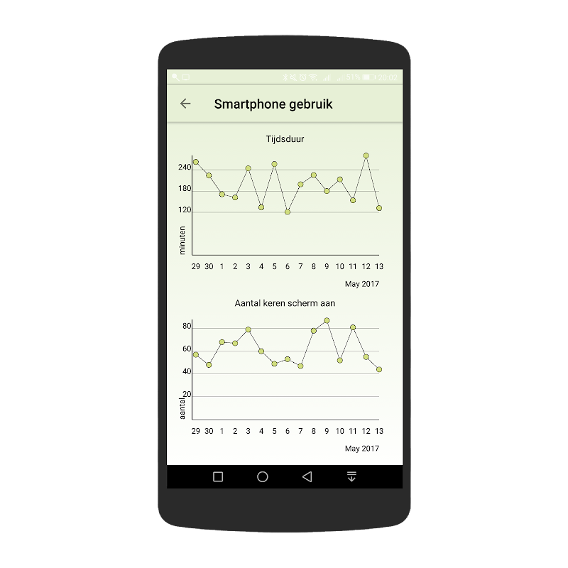 Smart Alert doet dit door slim te kijken naar hoe je je smartphone gebruikt. Hiervoor kijkt Smart Alert naar je smartphone gebruik, hoe lang het scherm aan staat, hoe vaak het scherm aan en uit gaat, het gebruik van social media apps, hoe vaak en hoe lang je telefoongesprekken voert, hoe veel afstand je aflegt, hoeveel je loopt (alleen als je smartphone een stappenteller heeft) en hoe het met je nachtrust gaat.