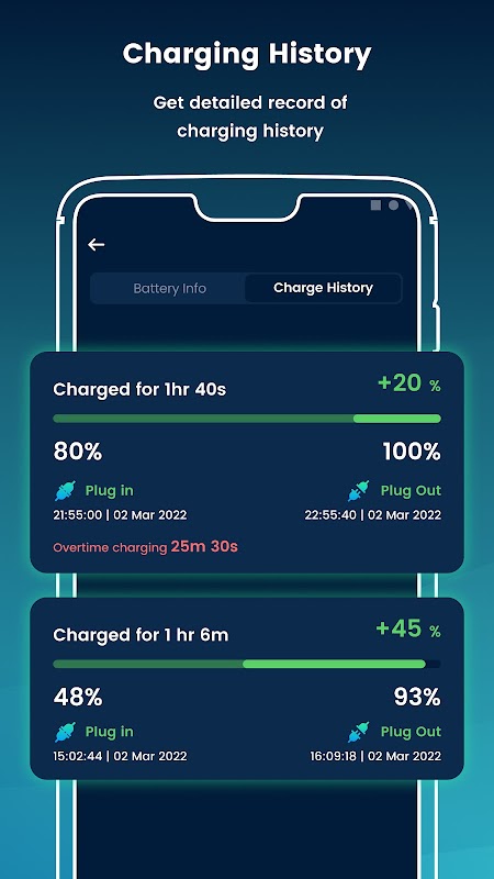 Bộ pin thông minh cho phép bạn kiểm soát tất cả các chức năng pin của mình để tối đa hóa tiện ích của nó. Tăng tuổi thọ pin với báo thức sạc đầy hoặc báo pin yếu để bạn biết chính xác cách sạc pin và không cần phải sạc mọi lúc.