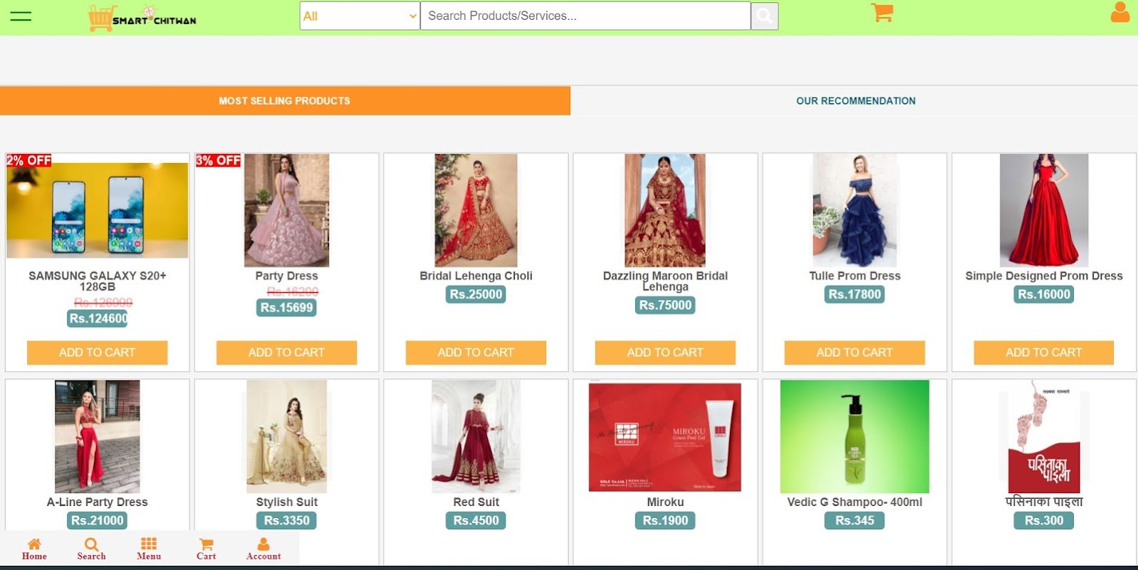Chúng tôi bán các mặt hàng Boutique, Điện, Trái cây & Rau quả, Mỹ phẩm, Ayurvedic.