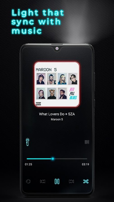Phát nhạc: Với tính năng này, bạn có thể dễ dàng phát các bài hát trên thiết bị của mình cùng với nhấp nháy đèn nền. Chỉ cần nhấn vào biểu tượng đèn pin là xong. & Nbsp; & nbsp;