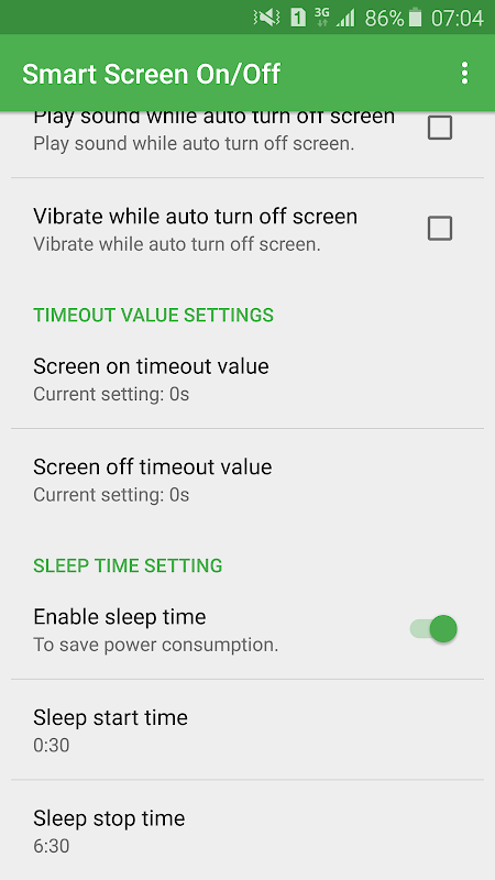 - Bạn có thể đặt các khoảng thời gian riêng biệt khi màn hình bật / tắt để tránh tình cờ bật.