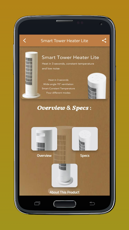 Nội dung của ứng dụng Smart Tower Heater Lite: -