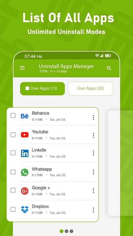 розумна програма для видалення та легка програма для видалення - це розумний інструмент для видалення та видалення небажаних програм для телефонів Android. ця програма дуже проста у використанні, ви можете одночасно вибрати кілька програм, які ви хочете видалити, і натиснути кнопку "видалити вибрані програми", щоб видалити їх лише одним натисканням.🤩