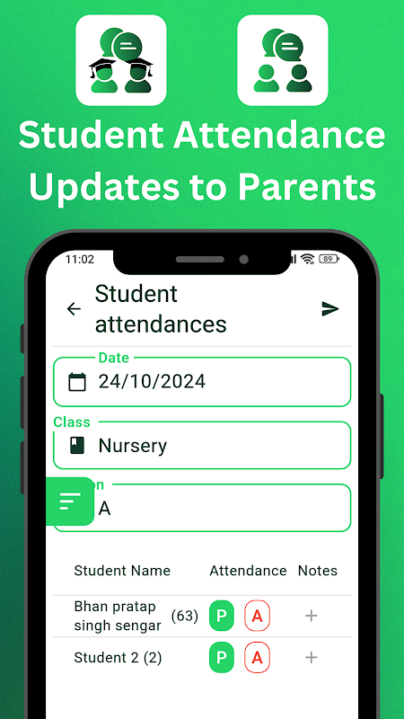 - Giao tiếp liền mạch: Ứng dụng tạo điều kiện liên lạc dễ dàng giữa nhân viên nhà trường và phụ huynh thông qua tích hợp WhatsApp. Luôn kết nối với các cập nhật theo thời gian thực về điểm danh, bài tập về nhà và các thông báo quan trọng.