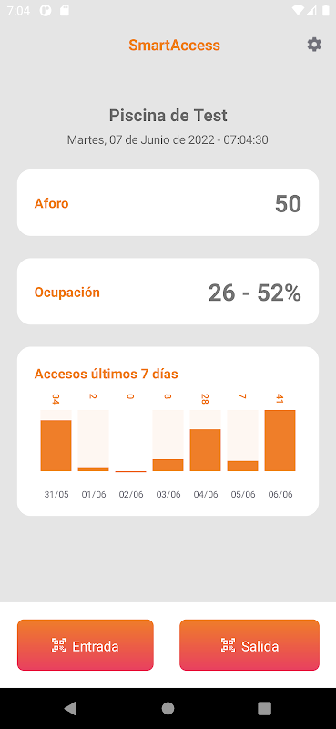 Với máy ảnh của thiết bị, hãy đọc mã QR được liên kết với đặt chỗ. Nó có thể được cấu hình để tự động phát hiện nếu nó là đầu vào hoặc đầu ra hoặc với các nút riêng biệt.