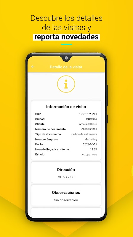 Ứng dụng cho phép nhận chương trình thăm viếng của cộng tác viên từ nền tảng web SmartControl của chúng tôi và cung cấp khóa học chính xác cho mỗi lượt truy cập thông qua các trạng thái khác nhau để đạt đến đỉnh điểm trong việc lấy mẫu kỹ thuật số. Các tiểu bang thông qua đó nhiệm vụ đi qua dẫn đến việc theo dõi và giám sát thời gian nhập ngũ, phân phối và giao hàng.