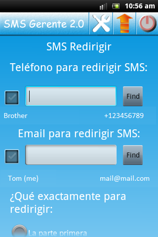 - Forwarding of incoming SMS messages to another phone number or e-mail address (you can at the same time).