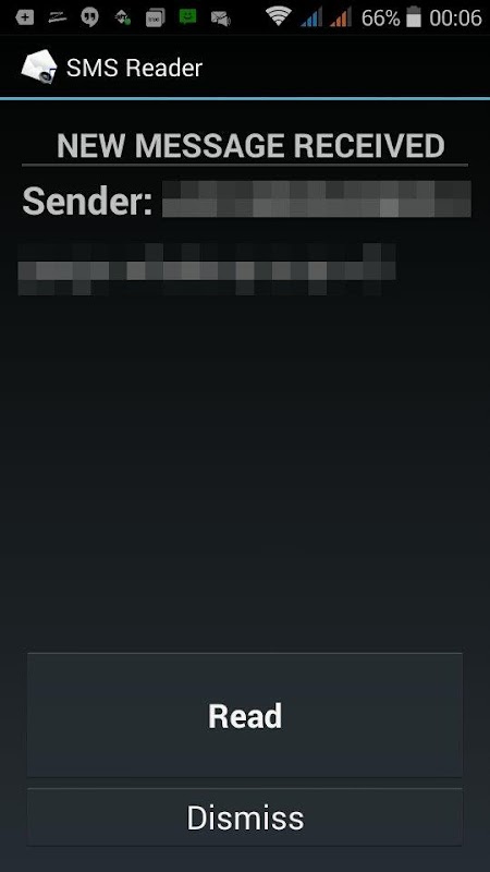 Optionally, you can let the application display an incoming SMS in a popup before choosing between reading or dismissing that message, without having to unlock your device.