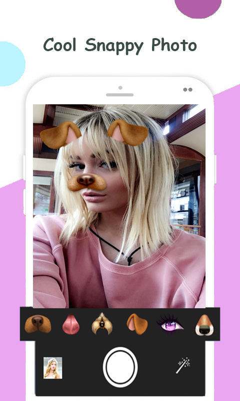 ** You can add funny smiley doggy, motion stickers, coachella filter, lovely eyes, crowns, cute rabbit, tears, stickers, animated stickers, and many snappy face effects to your selfie in just a few seconds