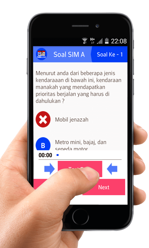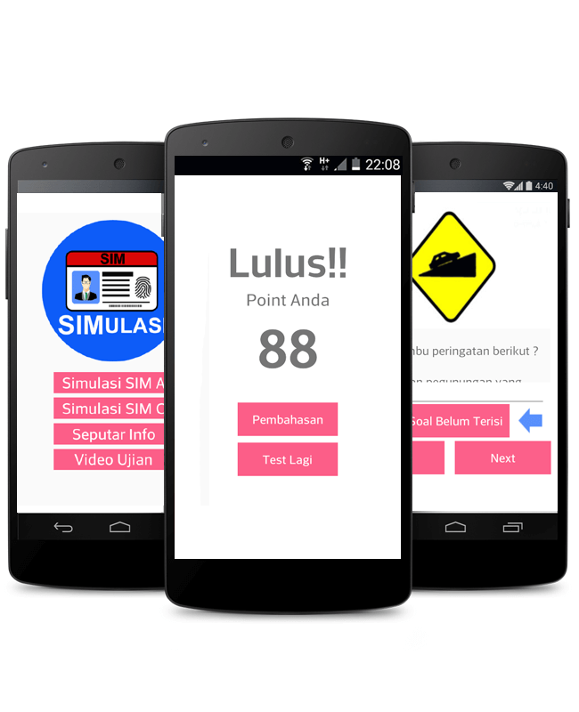 Sebuah aplikasi yang membuat Anda dapat berlatih agar dapat lulus dari ujian teori yang harus Anda lalui untuk mendapatkan SIM C (untuk pengendara motor) atau SIM A (untuk pengendara mobil). Berlatih menjawab soal yang sering maka peluang anda untuk lulus ujian teori pun semakin besar. Dalam aplikasi Ujian SIM C dan Ujian SIM A ini Anda juga akan diberikan KUNCI JAWABAN, sehingga Anda akan mengetahui jawaban apa yang paling tepat.