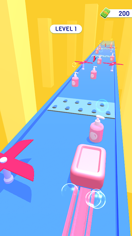Guide your bar of soap to the finish line as it grows and shrinks! Avoid soap cutting obstacles.