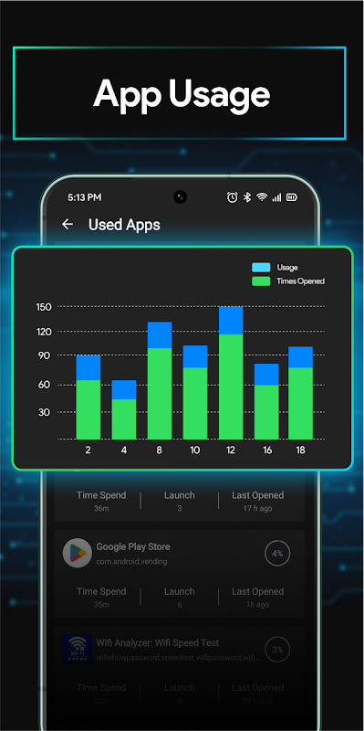 Nút Quét Ngay hiển thị tất cả danh sách các ứng dụng đang chờ cập nhật. Bạn có thể dễ dàng cập nhật tất cả các ứng dụng chỉ bằng một tab từ Cửa hàng Google Play. Công cụ này cũng có thể quản lý các ứng dụng, giúp bạn dễ dàng kiểm tra tất cả các ứng dụng, ứng dụng người dùng và ứng dụng hệ thống. Xác minh dữ liệu thiết bị chính, bao gồm nhà sản xuất, bộ nhớ, kiểu máy, phiên bản và ID Android. Nó sẽ nhanh chóng cung cấp cho bạn dữ liệu sử dụng ứng dụng hữu ích nhất cho việc lên kế hoạch cho lịch trình làm việc hàng ngày của chúng tôi.