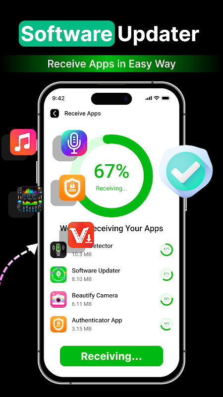 Tính năng cập nhật điện thoại này hoạt động giống như một bản sao điện thoại hoặc công tắc thông minh, nó chuyển APK ứng dụng từ thiết bị này sang thiết bị khác.
