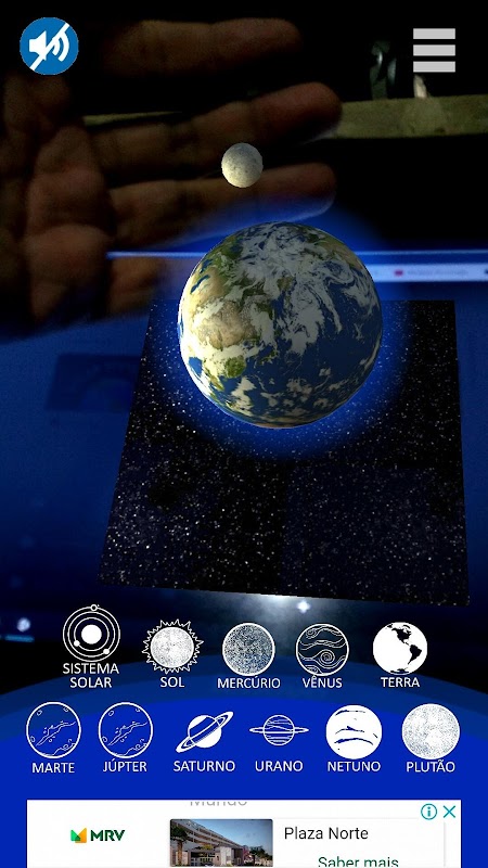 Với ứng dụng này bạn có thể đáp ứng toàn bộ hệ thống năng lượng mặt trời trong chuyển động với kết cấu thực tế. Thực tế tăng cường sẽ cho bạn thấy tất cả các chi tiết của các hành tinh với tên của họ bằng tiếng Anh và Bồ Đào Nha.
