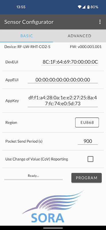 Ứng dụng Trình cấu hình cảm biến SORA cho phép bạn định cấu hình và thiết lập cảm biến SORA Sontay của mình.
