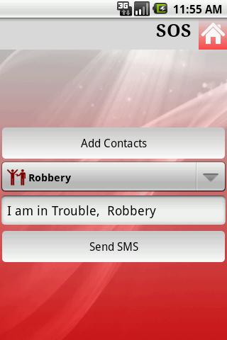 SOS Application gets your location and sends your current the address to your buddy and close once. When somebody is at risk, every microsecond counts. The SOS Application will send your current location to your friends and family members added on your SOS emergency call list. Within 30 seconds after you press Send SMS button on your phone the SMS containing your current location with a default trouble message “I am in trouble” will be sent to all contacts listed in your SOS contact list.