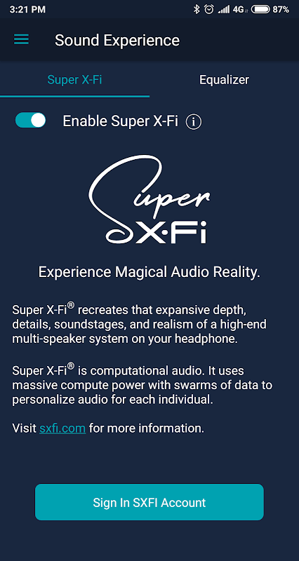 - Để tận hưởng trải nghiệm hoàn toàn của Super X-Fi, vui lòng tải xuống Ứng dụng SXFI.