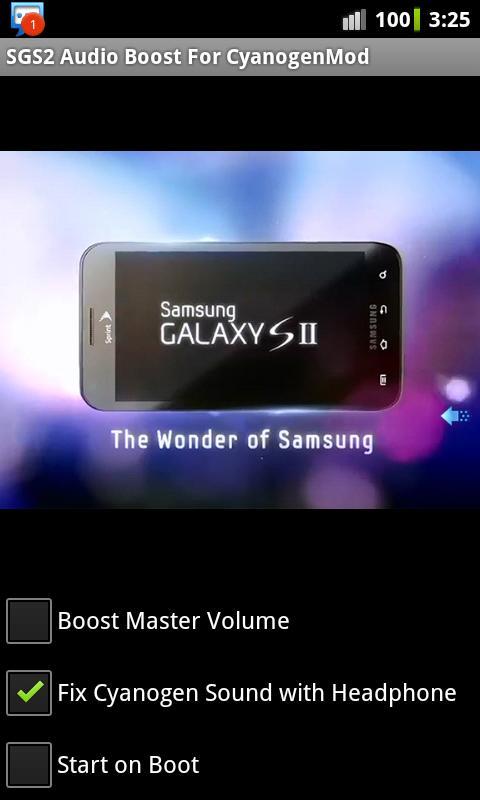 (only available in DONATE Version 'SGS2 Audio Boost For Cyanogen' )
