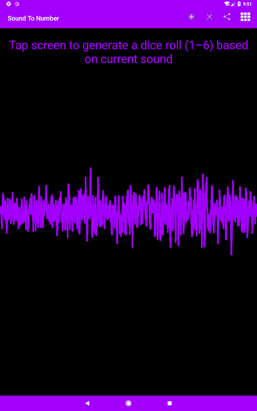 This app will show current sound wave and will allow you to generate a random number from 1 to 6 based on some basic maths over the bytes contained in the last sound wave.